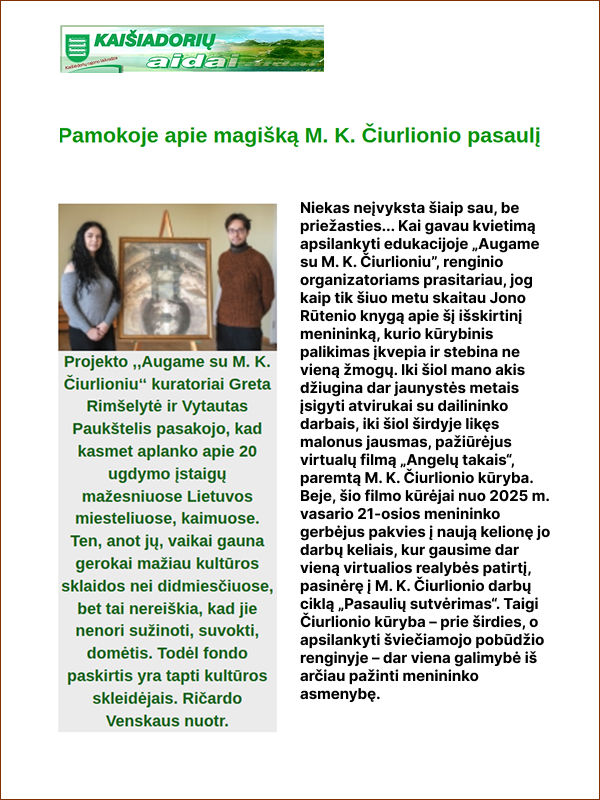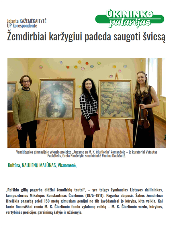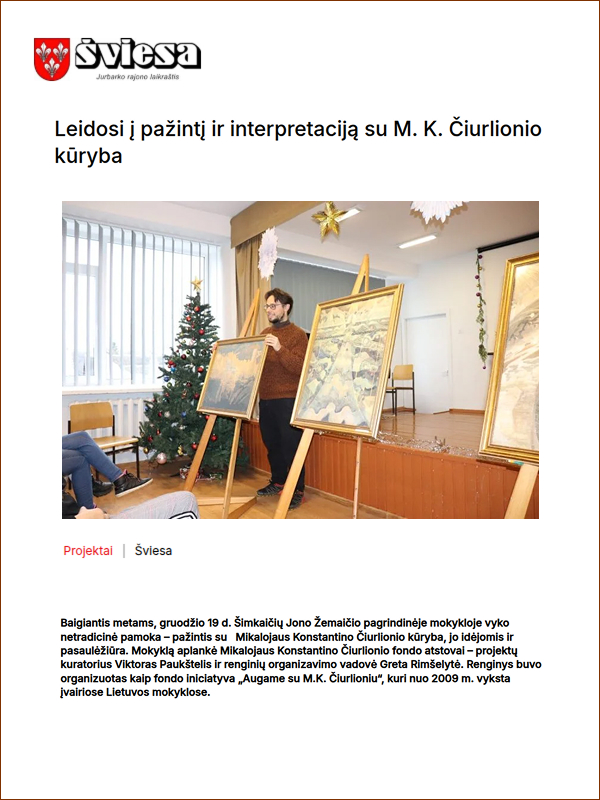 Baisogalos gimnazijos straipsnis apie M. K. Čiurlionį